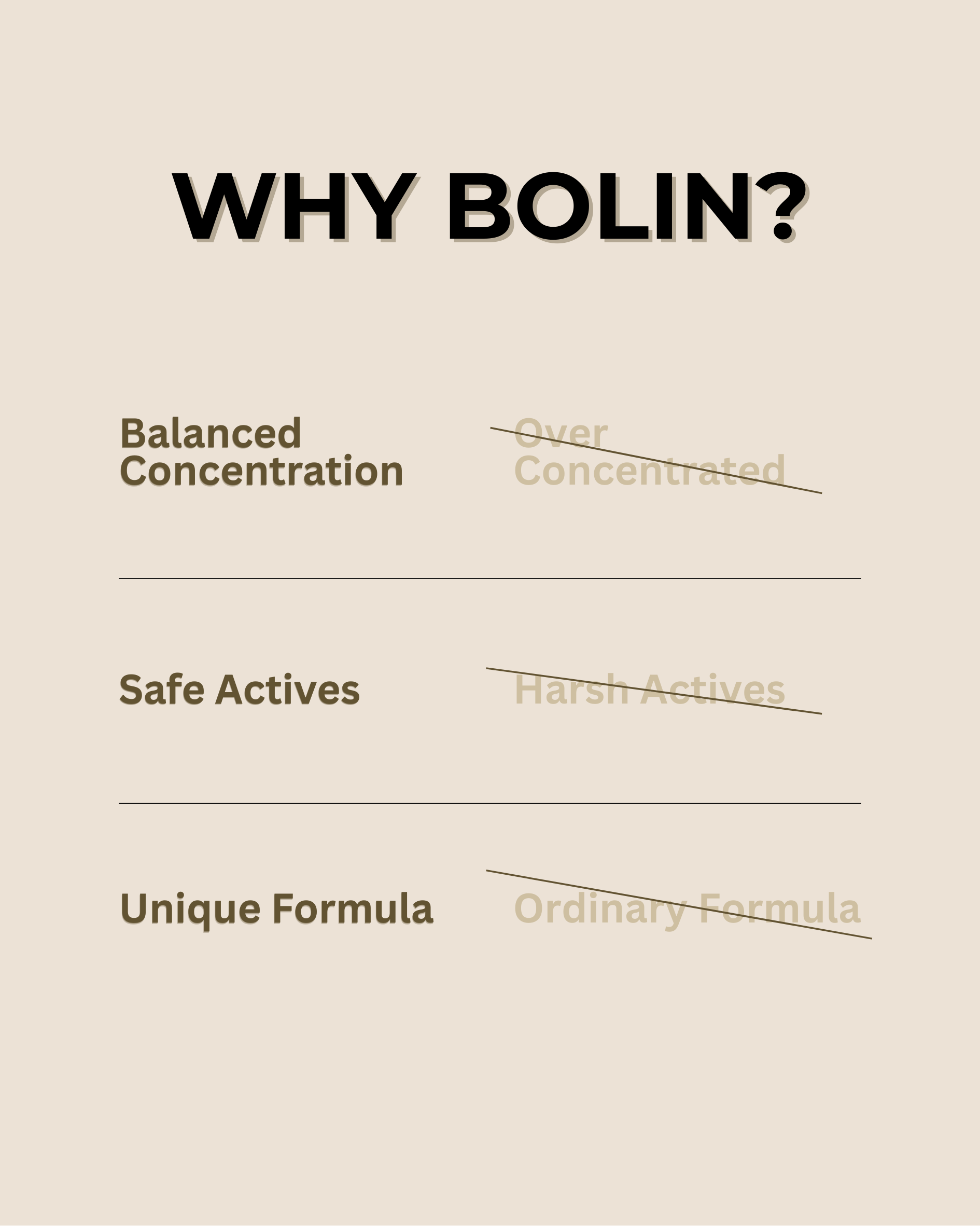At Bolin, we believe beauty should never come at the cost of your skin’s health. That’s why every Bolin product is born from one simple promise: Bolin Never Harms.